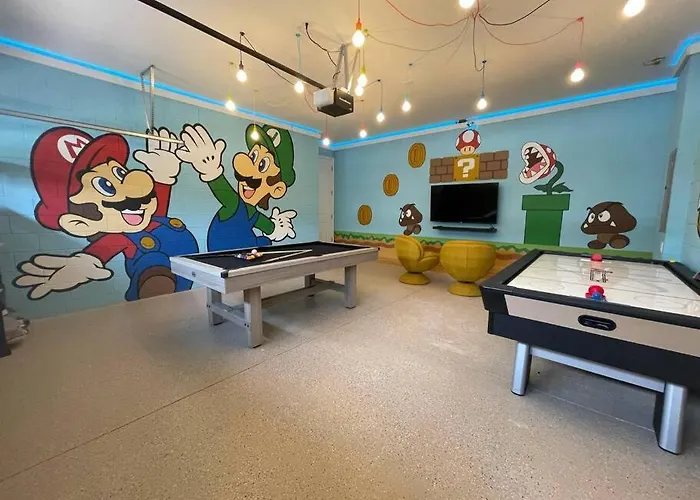 A Luxurious Encore Villa 10 Min Disney Inc/Waterpark Orlando está a 2.7 km de Clube de Golfe Mystic Dunes no Mystic Dunes Resort e convida os hóspedes a desfrutar de terraço. Situada no bairro Celebration em Orlando, esta casa de férias inclui piscina privada, juntamente com jacuzzi.
